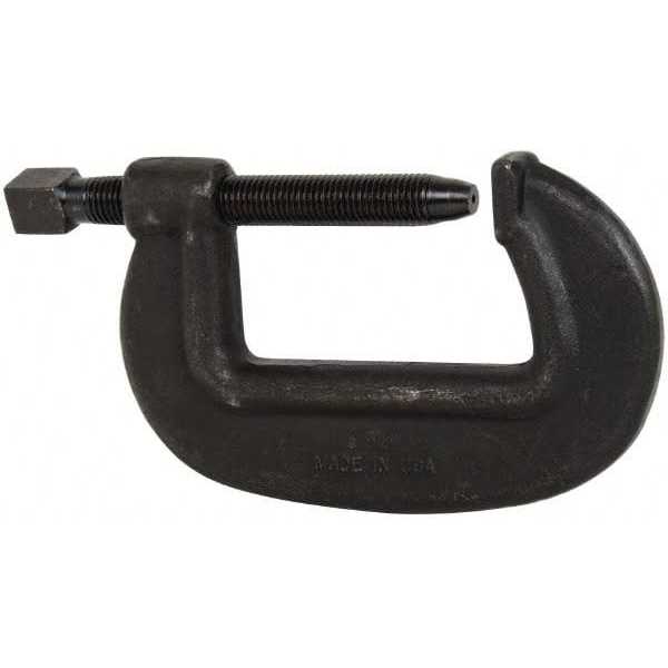 Wilton Brute Force C-Clamps are ideal for heavy construction and fabrication. Brute Force c-clamps boast a drop forged frame, Black Oxide coating, and clamping,pressure ranging up to 40,000 lbs. Spindles are full length, machined from a single piece of square, cold drawn steel tempered and hardened. Square spindle heads stand up to heavy wrench tightening.