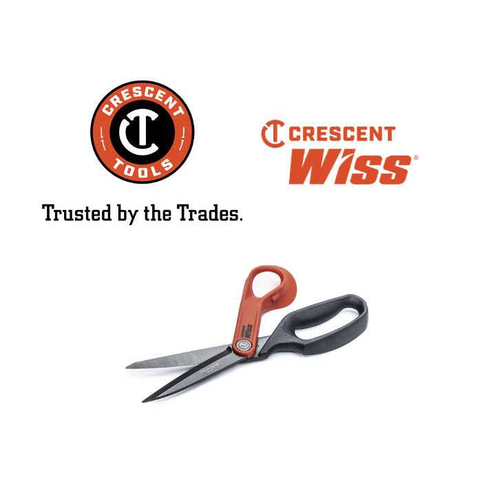 Crescent Wiss Professional Shears 254mm (10in) CW10T Crescent Wiss Professional Shears feature premium steel blades with a titanium coating that is 3x harder than steel providing increased durability and longer edge life. A serrated bottom blade grips material for better control and cleaner cuts. The touch-point ergonomic handles feature soft textured TPR grips, designed to deliver the ultimate in comfort and control. Optimised handle contact points and an index finger control channel improve cutting power and increase stability. The handles have an offset design that keeps hands above the material for safety and easier tabletop work. Ideal for cutting heavy fabric, leather, cardboard, plastic and much more.