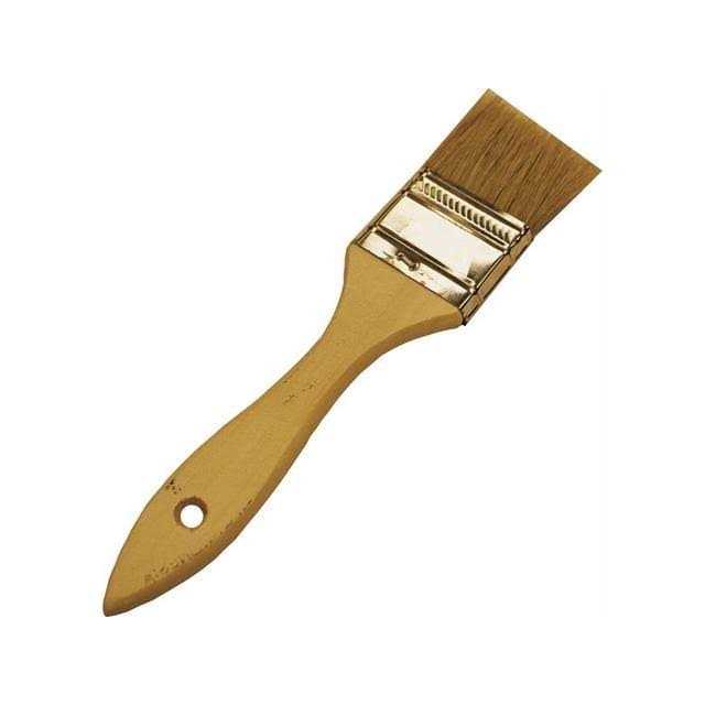 . Highlights:. Width: 2″. Plain wood handle.Tin-plated steel ferrule.White bristle.For applying varnishes, stains, glues, and craft or decorative project paints as well as for brushing chips and dusting.