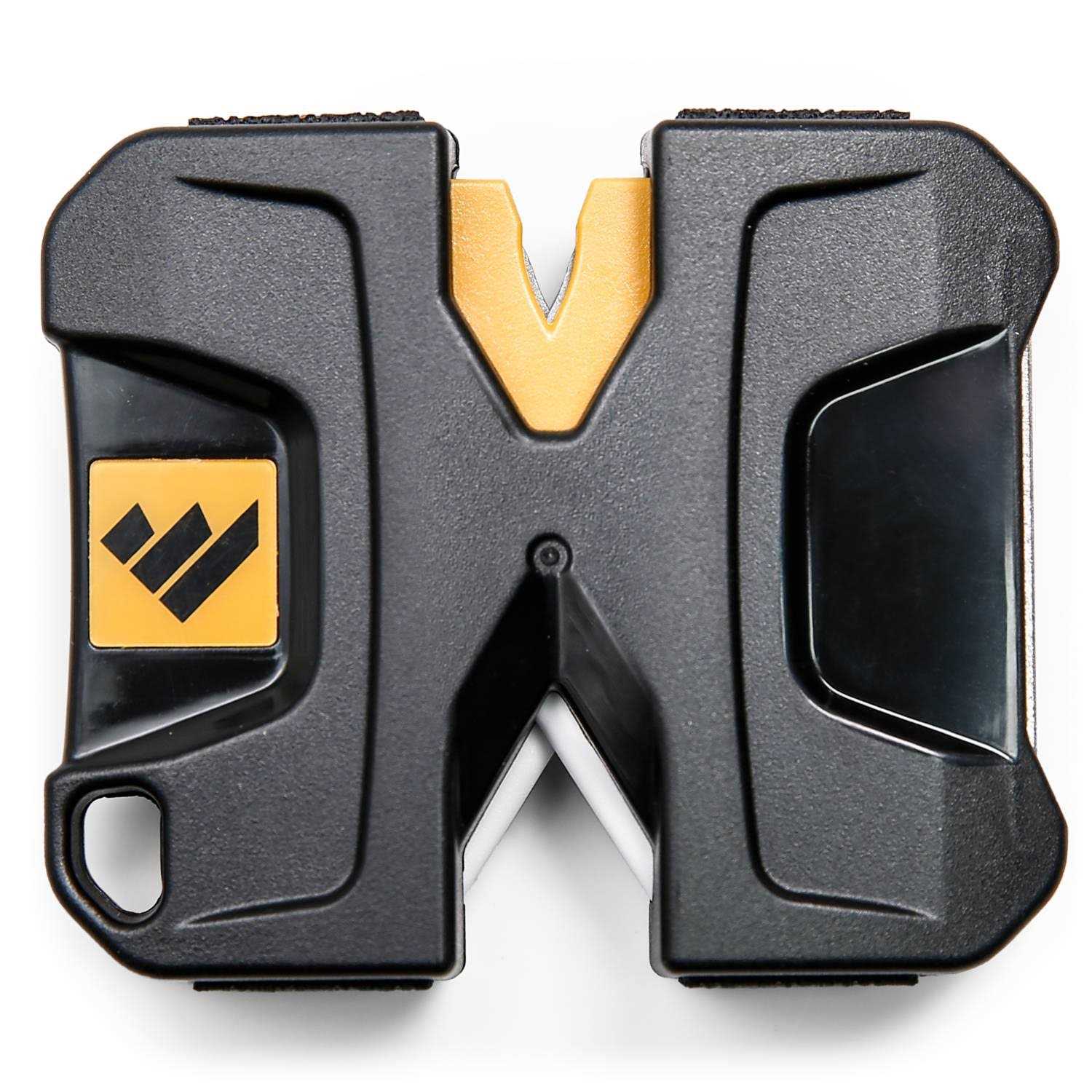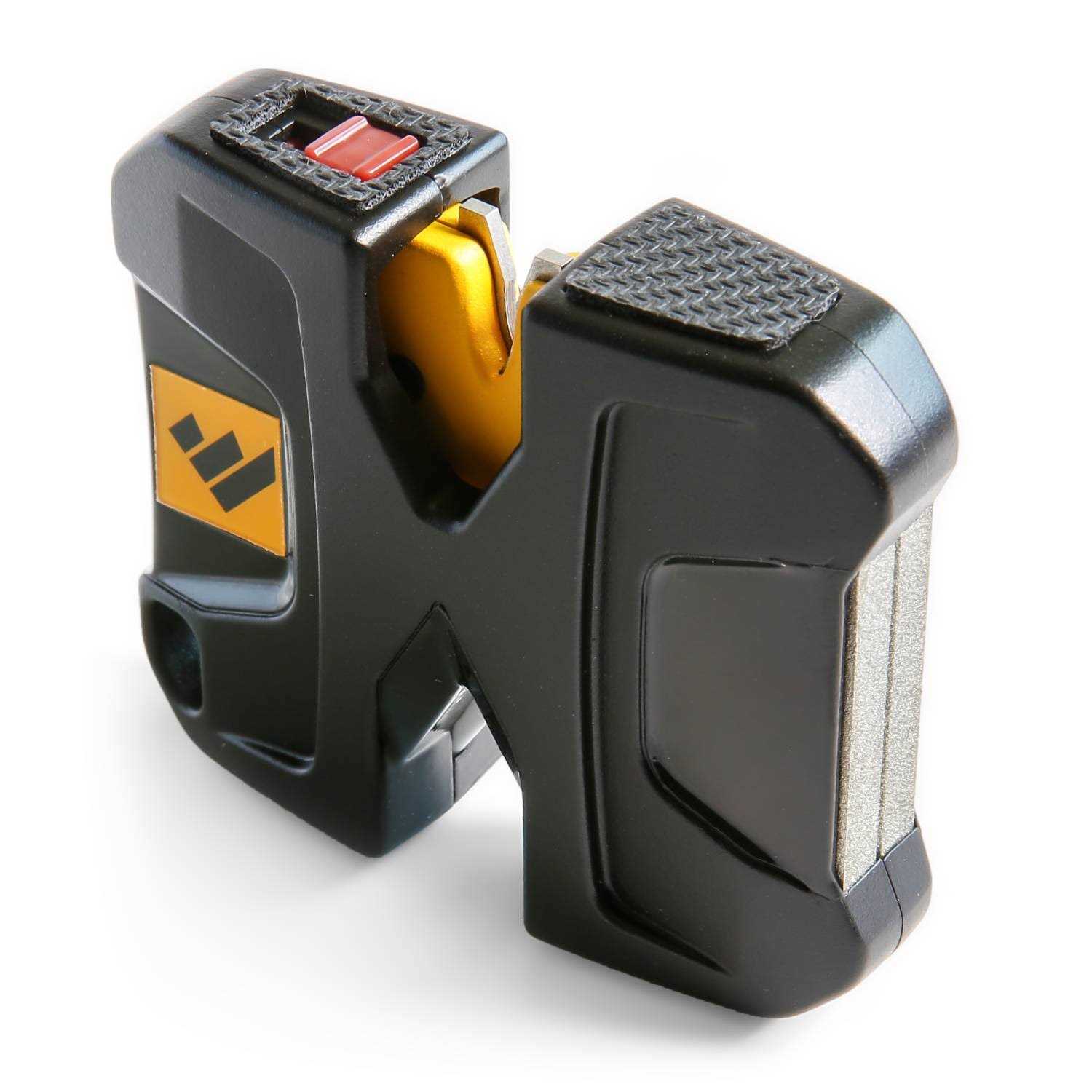 The Work Sharp Pivot Knife Sharpener is a fast, easy and effective way to sharpen any knife you own. The Convex-Carbide sharpening blades quickly restore a sharp edge; while the fine grit ceramic rods hone the edge to factory level sharpness. Pivot-Response sharpening blades follow the curve of the blade when sharpening making it easier and more consistent. Additional medium grit diamond sharpening surface is ideal for touching up knives, tools and even fishhooks. Compact size easily stows in your pack, pocket, tool or tackle box.