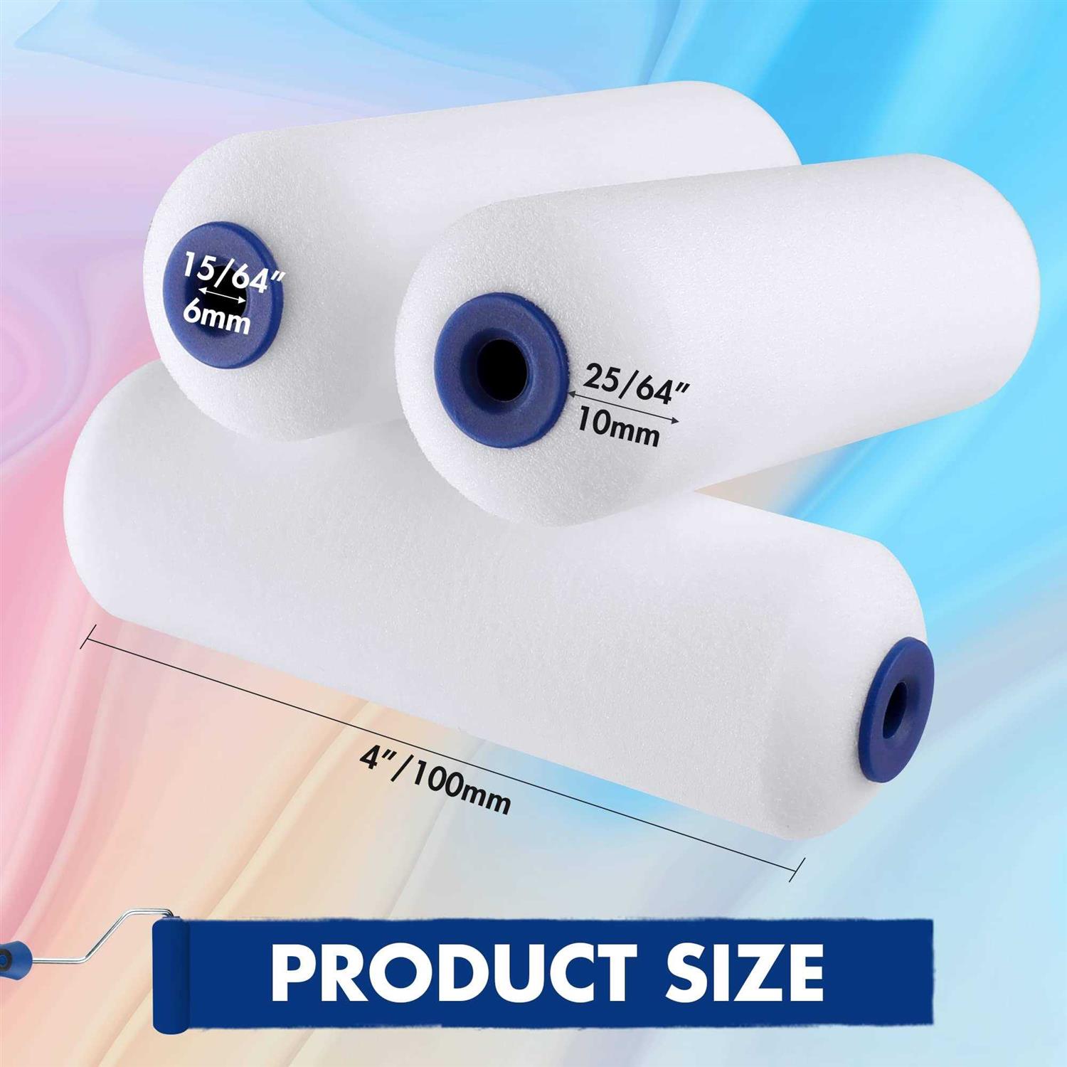 4“mini foam paint rollers fit standard 4-inch roller frames and can go directly into a 4-gallon paint bucket, which is especially useful for narrow surfaces behind radiators or pipes. The foam paint rollers can be used with most paints, stains, varnishes, lacquers, shellacs, waterproofers, and urethanes. The high-density foam absorbs paint better, saving paint and leaving no bubbles. Compared with fabric paint rollers, the foam paint rollers will not leave fabric when painting, ensuring a quick and smooth coverage of surfaces. The small paint roller kit is ideal for flat surfaces like cabinets, doors, metal, furniture, and shelves, a good choice for family DIY use.