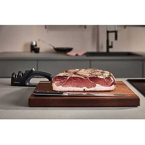 This 2 stage sharpener has coarse and fine notches for sharpening and honing standard style blades. The first stage carbide (coarse) sharpens dull edges. The second stage ceramic (fine) provides a polished, razor sharp edge. A reasonably sharp knife may only require this light honing. Since 1814 WÜSTHOF has set the standard for designing and manufacturing precision-forged knives. Wüsthof knives are manufactured by a skilled team of 300 dedicated workers in two state-of-the-art facilities in Solingen, Germany. Production there follows strict rules in order to achieve the finest quality, while at the same time remaining environmentally friendly.